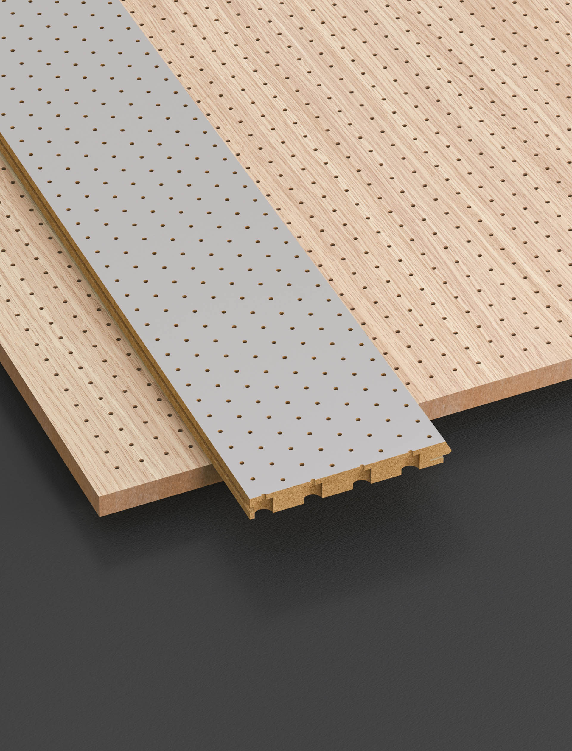 Kolme levykokoa, useita eri perforointeja ja laaja valikoima pintavaihtoehtoja tekevät modulaarisesta 4for -paneelista erinomaisen ratkaisun kaikenlaisiin suunnitelmiin ja käytännön sovelluksiin.