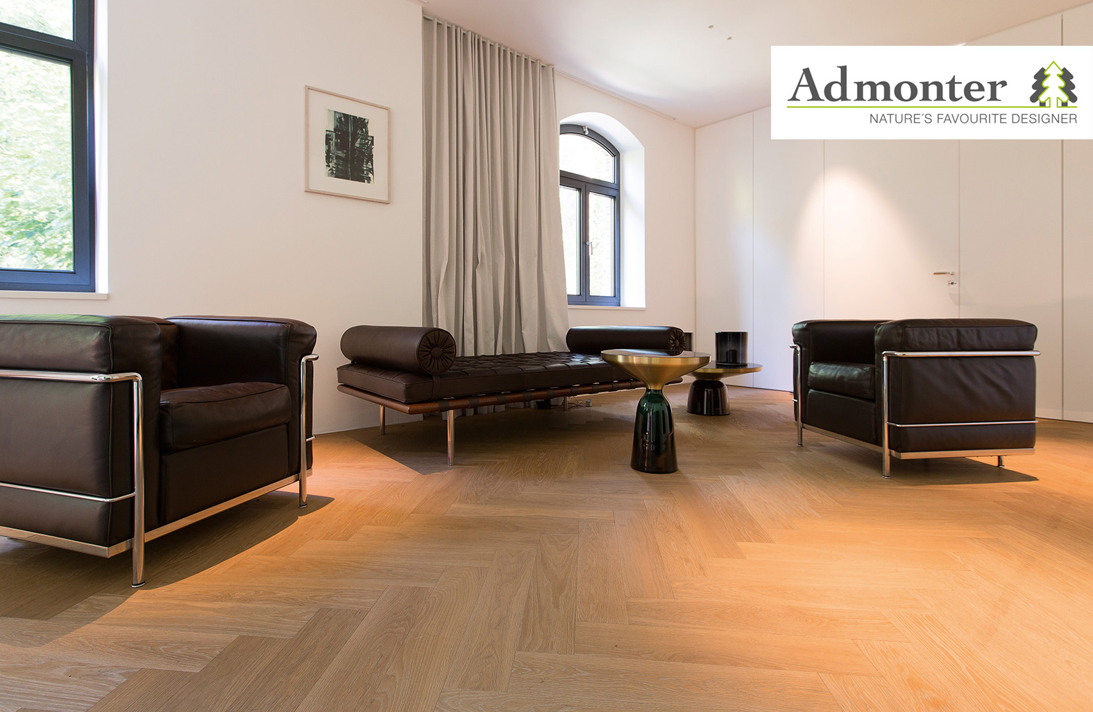 - Yhdistettävyys. Admonterin sisustuslevyjen ja parkettien mallisto on suunniteltu toimimaan yhdessä, parketista kattoon, mahdollistaen siten eheät ja yksilölliset sisustuskokonaisuudet.